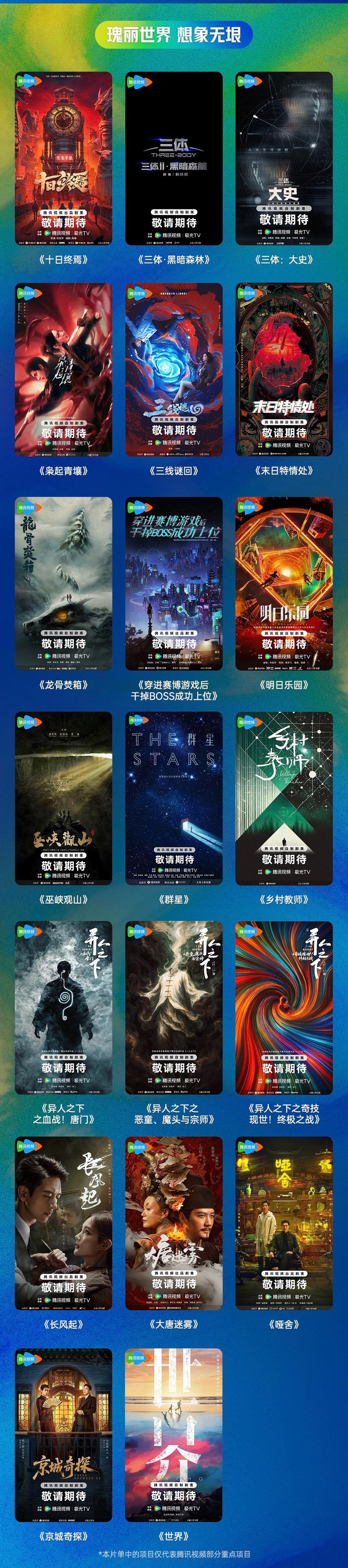 2026騰訊劇集片單包括六大板塊、上百部劇集,涵蓋嚴肅文學、現實主義、都市情感、刑偵懸疑、科幻探險、古裝傳奇等多元題材類型。