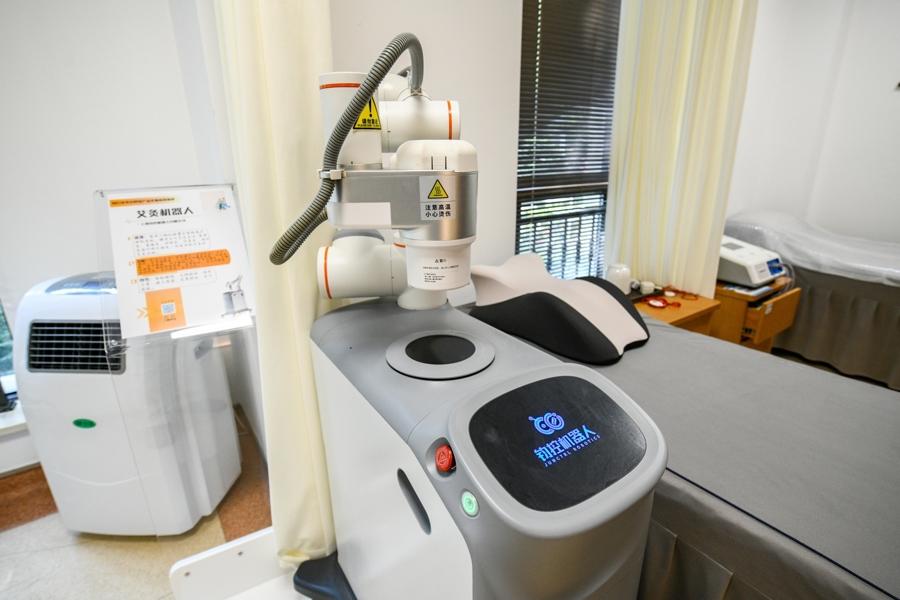 圖爲艾灸理療機器人。/文匯報記者邢千里攝