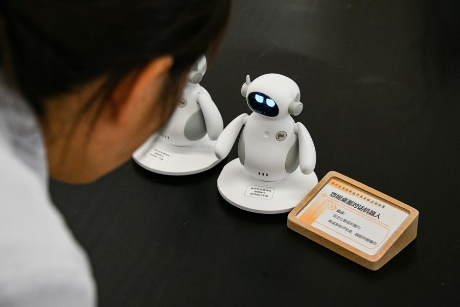 圖爲養老院內使用的桌面對話機器人。/文匯報記者邢千里攝