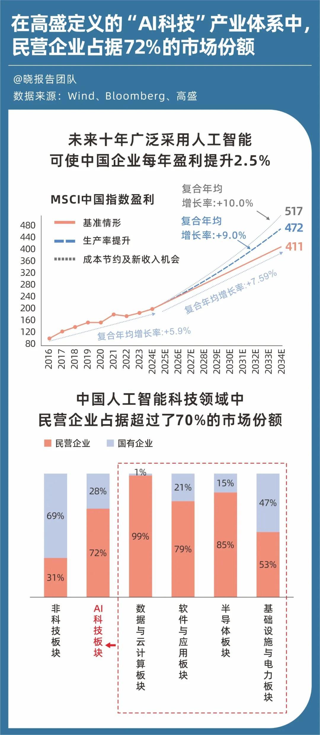 這種優勢在業績表現上,體現得更爲明顯:科技與AI相關的民營企業在2024—2025年的盈利增速,預計將比非科技類企業高出約15個百分點。