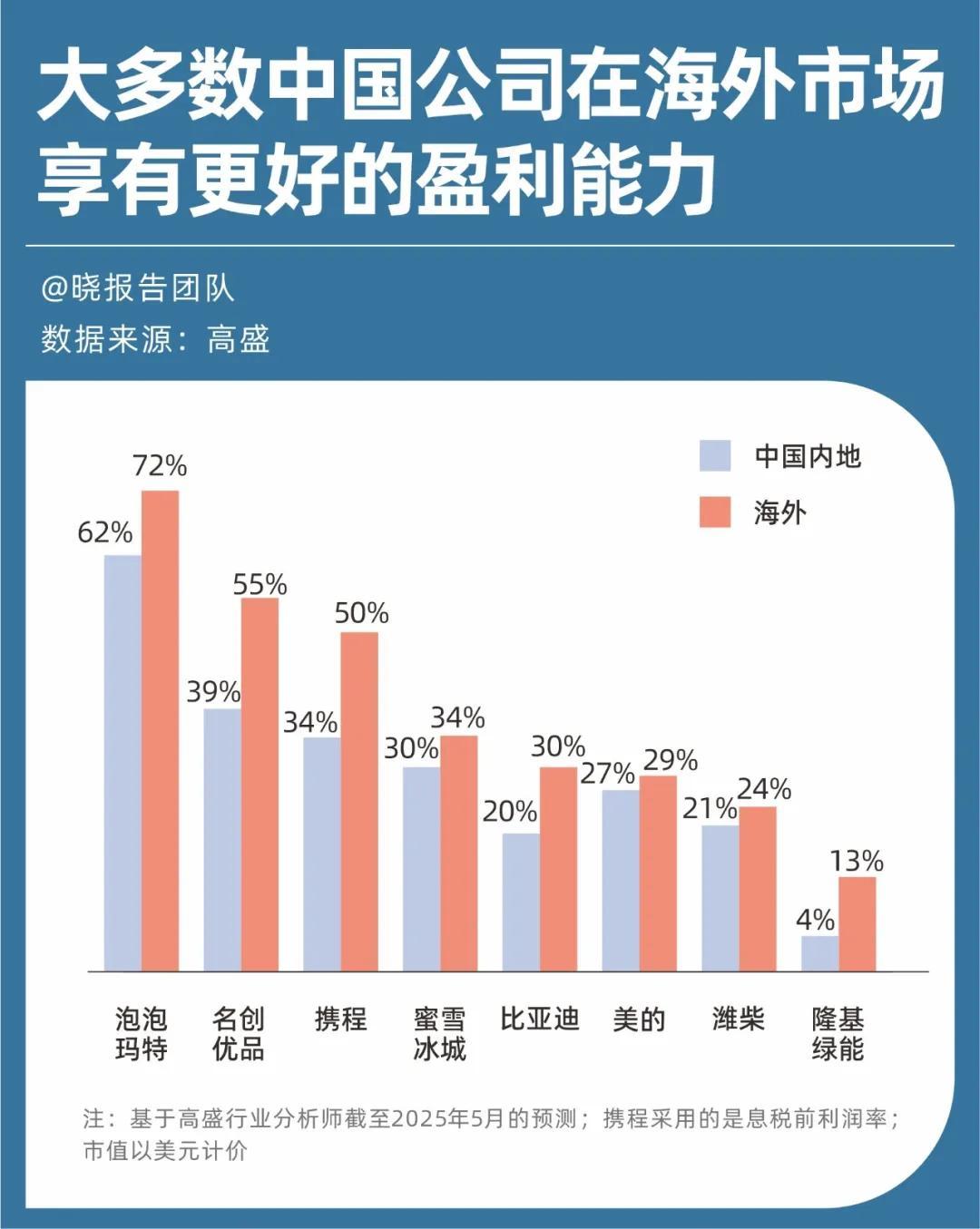 根據高盛統計數據,2024年中國民企境外收入已佔總收入的近20%,相比2017年翻了一倍以上。