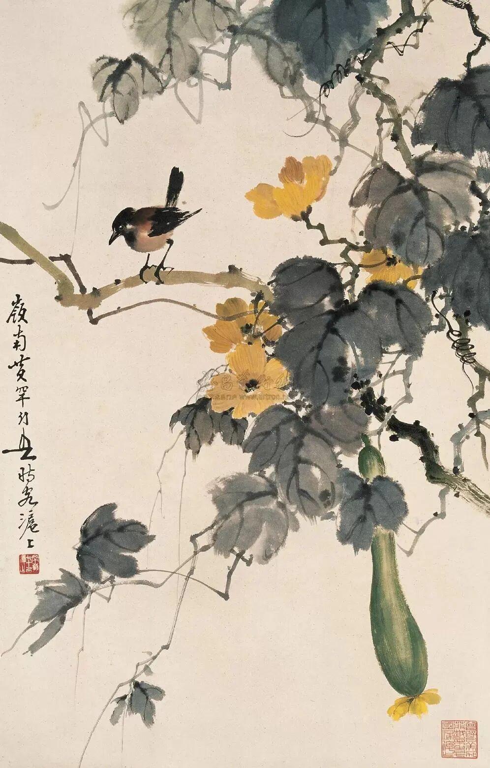 嶺南黃幻吾,畫有《絲瓜圖》,瓜青,葉碧,花黃,關關小鳥,嚶嚶其上,一派生機。像是童年的寸金糖上蘸了幾粒芝麻,被吮得晶亮。一牆風景,真是獨得了瓜棚閒話,因閒話得了幾分閒情。