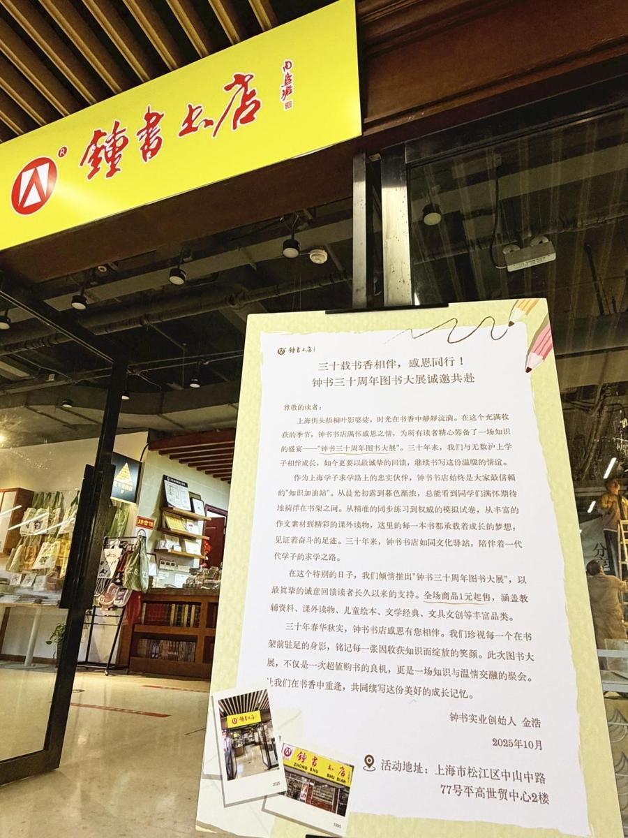 三十載春秋流轉,鍾書書店從最初的一家小店,發展到巔峯時期在上海擁有21家門店的規模。如今,鍾書實業旗下的第一家鍾書書店,也是全國最後一家鍾書書店,迎來“鍾書三十週年圖書大展”,以一場力度空前的文化回饋致敬讀者,傳承書香。