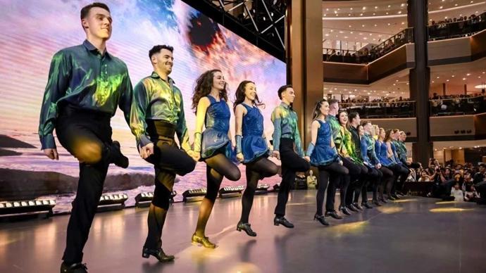 演出現場,《大河之舞》主創卡司攜團震撼呈現三場精選片段,吸引衆多舞劇愛好者及消費者駐足欣賞。大家被快速、精準且富有節奏感的踢踏動作吸引,伴隨着豐富多樣、極具韻律感的舞臺演出,全場沉浸在震撼人心的藝術盛宴之中。