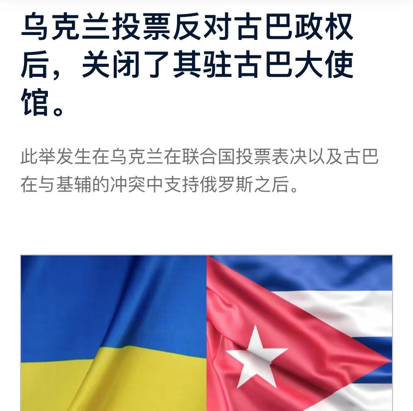 古巴越來越孤立?烏克蘭第一次在聯合國投反對票,同時關閉大使館