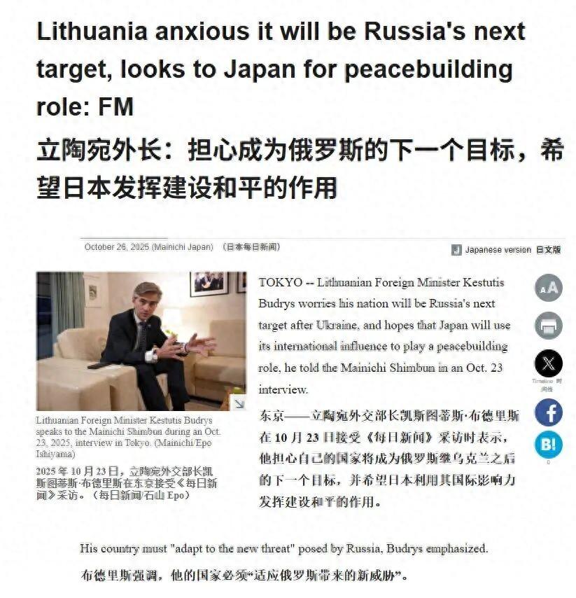 對日本而言,立陶宛雖然體量小,卻是接近"危險源"的前哨,與其通過北約間接獲取信息,不如直接與當地政府建立渠道。