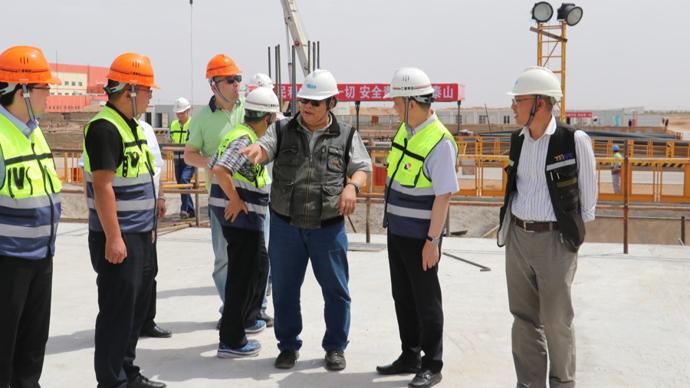 徐洪傑(右三)在釷基熔鹽實驗堆工地上(上海應物所提供)