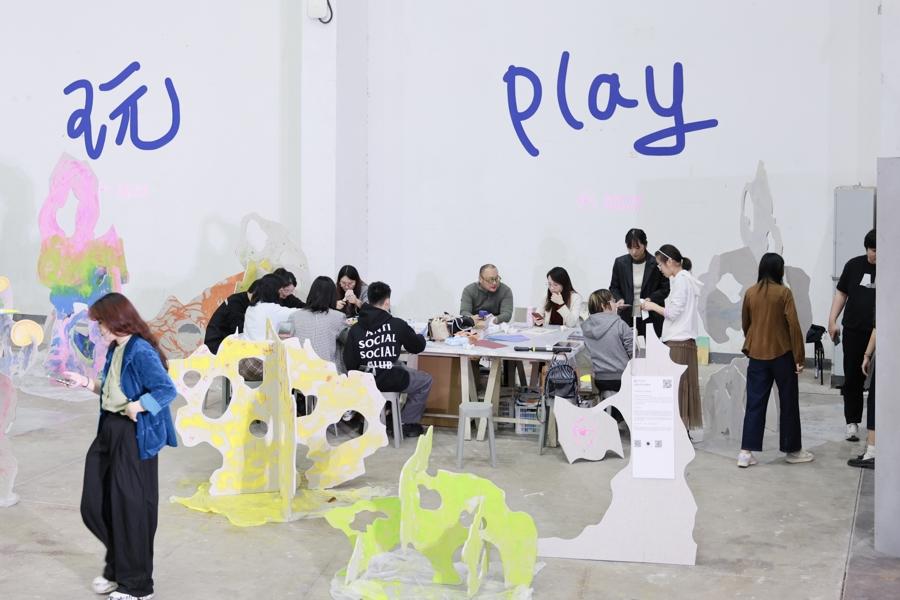 劉毅工作室帶來“玩- PLAY”自然形態共創現場,邀請從幼兒園的孩子到高校學生在自己的“湖石”現場“玩”,向自然學習造型方法。現場作品的面貌會在這幾天持續教學工作坊中慢慢變化。