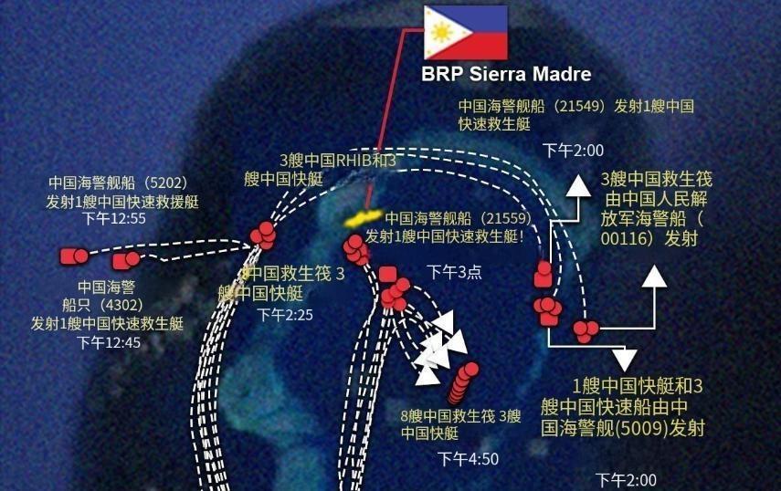 菲律賓軍方曾試圖用快艇硬闖的方式運送補給,但被中國海警攔截驅離,面對這一局面,菲軍高層曾發出威脅,稱若“馬德雷山號”上出現人員死亡,將視爲“紅線”,甚至揚言“若死一人就開戰”。