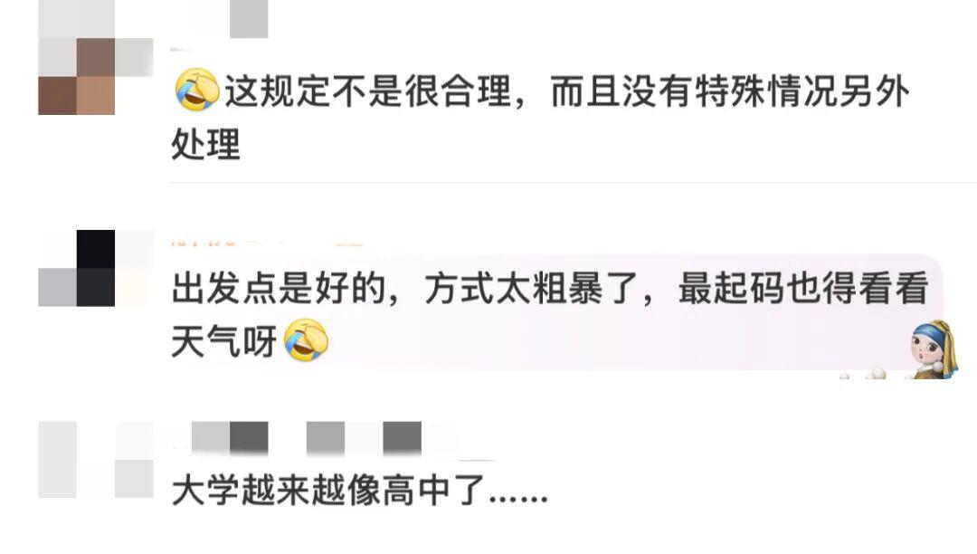 此事引發網友廣泛熱議。 有網友質疑這樣的規定“缺乏人性化”,也有網友認爲學校是“爲學生好”,要理解學校的良苦用心。