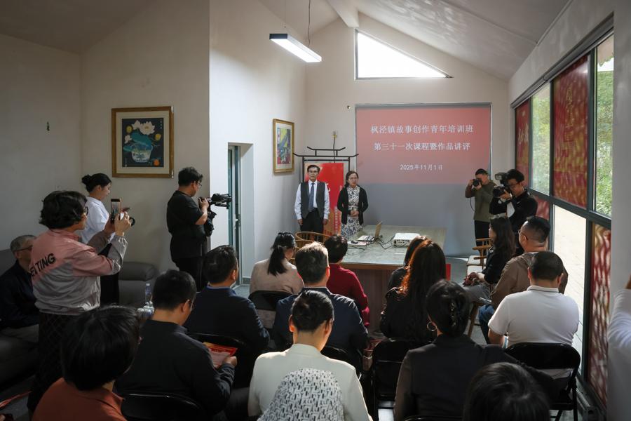 11月1日,2025年上海市民文化節紅色故事講演大賽頒獎典禮暨成果展示活動在新義村舉行。百位“紅色故事傳講人”齊聚中國故事村,創新性地以特色地標爲“天然劇場”,在故事基地、故事人家、故事創客基地、故事村咖等點位依次開展沉浸式故事展演,讓大家在實景與故事的交織中,觸摸紅色歷史的溫度。