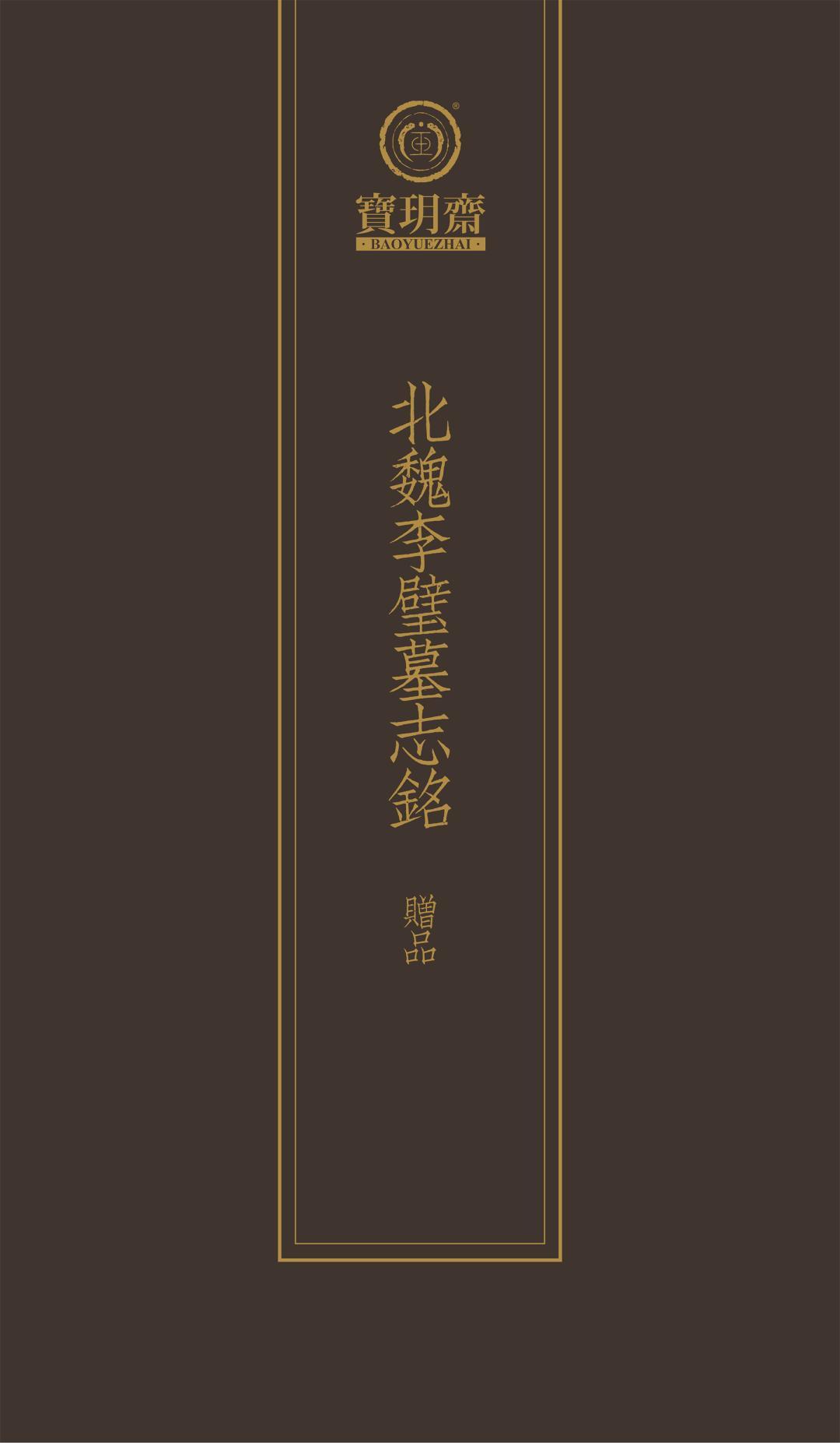 贈品二:《李璧墓誌銘》依初拓整紙本影印,志陽(940mm×900mm)分二紙、志陰(686mm×450mm)一紙印製,可觀志文全貌。300線四色精印,185克微塗層藝術紙,方正摺疊,特製贈品紙袋。