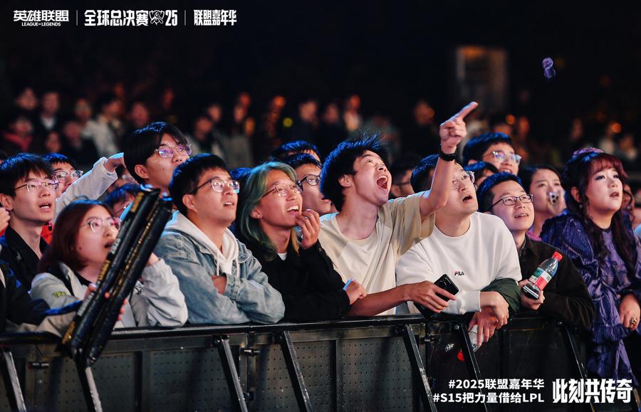 下午2點,北外灘國客中心的S15觀賽現場“人從衆”,匯聚了來自各地的年輕人。現場不僅設置了多個階梯式觀賽區,更巧妙地將LPL的傳奇記憶融入了風景裏——沿江線化身爲“電競走廊”,呈現過往賽事的經典畫面與高光時刻。當Uzi、Baolan、Crisp等知名選手出現在觀賽區,立刻引發了觀衆的陣陣歡呼。