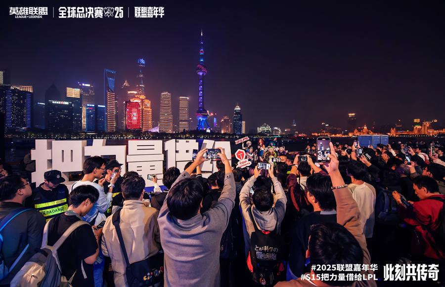 11月1日至11月2日,2025英雄聯盟全球總決賽(S15)半決賽激戰正酣,“電競之都”上海把觀賽現場搬到了黃浦江畔。北外灘國客中心,一段上百米的超長沿江線,正對“魔都三件套”的絕佳機位,化身爲巨型開放式電競“野區”。這裏沒有圍牆,黃浦江沿岸的景色和電競的熱血,成了最佳拍檔。與此同時,S15在上海梅賽德斯-奔馳文化中心激戰正酣,將電競熱情播撒到北外灘、大學路,乃至街頭巷尾。