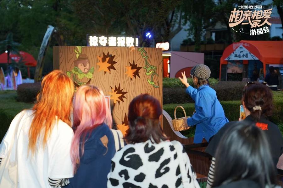 在巨大的轉盤前,音樂劇發燒友旺卡正和朋友們擺着各種姿勢拍照打卡。“規模這麼大、氛圍這麼好的遊園會還是第一次參加。”“當天買票當天進的遊客不在少數,”袁齊透露,這也與“一臺好戲”選擇在公共空間舉辦的“破圈”初衷不謀而合,“這不僅是場圈內聚會,更希望它是面向公衆的大型文化產品。”小遊戲中,一等獎被設置爲音樂劇門票,讓潛在的新觀衆“中到門票,就會去看看演出”。