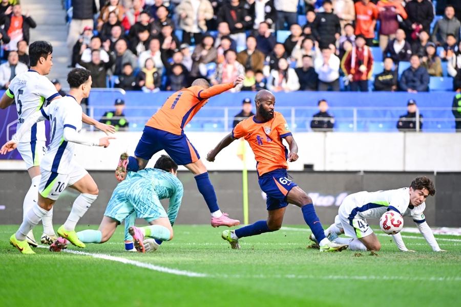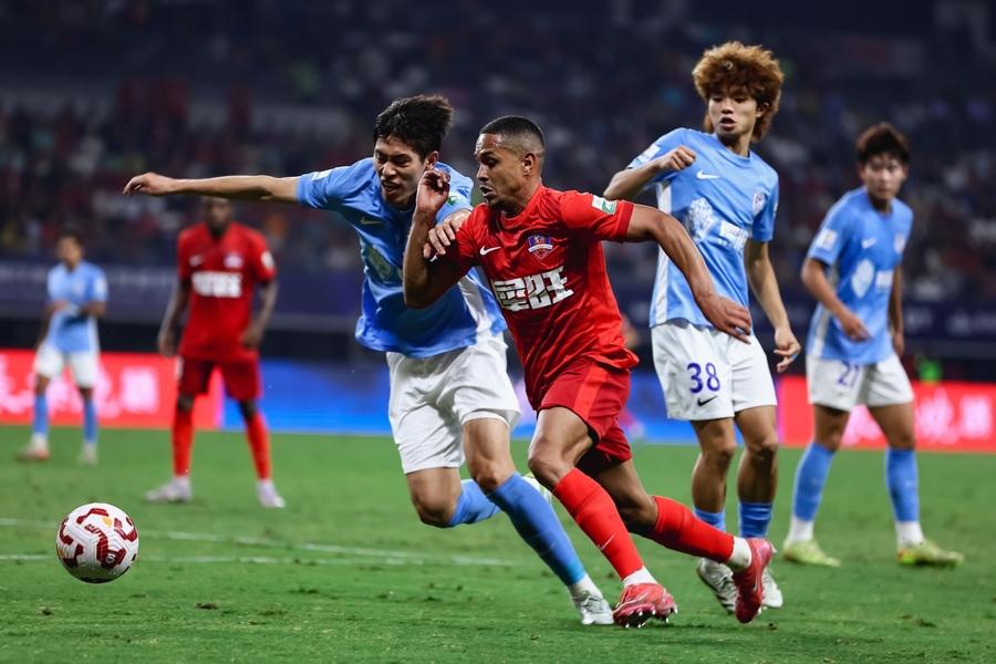 青島海牛(橙)擊敗武漢三鎮多少佔了賽程的光