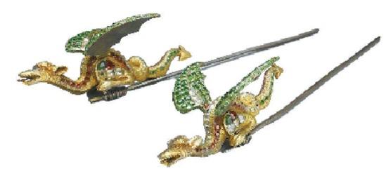 目前臺北故宮博物院存有多件西洋龍的簪子,可能就是檔案中記載的乾隆皇帝命令將“飛蛇”“配銀鍍金梃做簪”留下的產物。