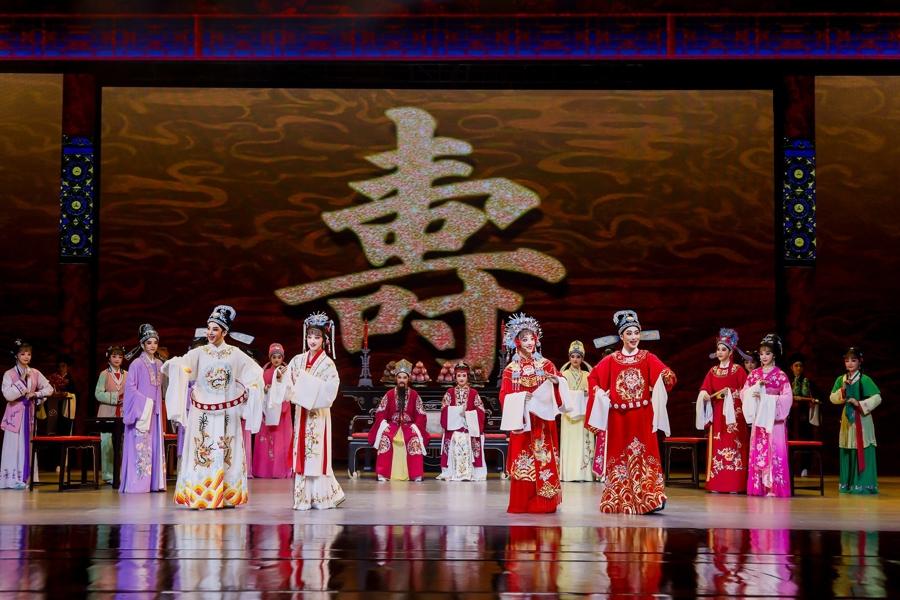 當晚,教學成果彙報演出匯聚師生與校友同臺獻藝,以茅威濤與戲曲學院學生“師徒傳藝”,串聯起畢業生鄭佳豔、李雲霄、倪潤志等莘莘學子,京劇、越劇、崑劇多劇種戲曲綜合表演《代代相傳》。2019小百花班青春版越劇《五女拜壽》的演繹,串聯浙藝與五代浙江小百花越劇院四十年育人的共生共長。整場演出彰顯了浙藝“薪火相傳、絃歌不輟”的文化傳承與“守正創新、勇攀高峯”的奮進精神,爲觀衆奉上一場充滿溫情、彰顯水準的藝術盛宴。