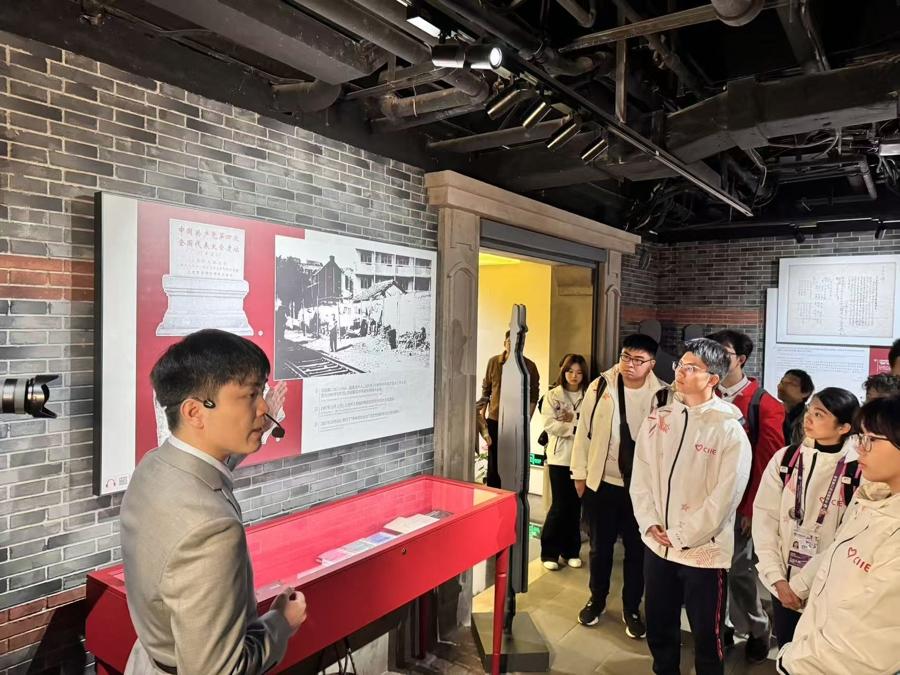 第八屆進博會港澳臺青年志願服務團在中共四大紀念館中參觀。 單穎文 攝