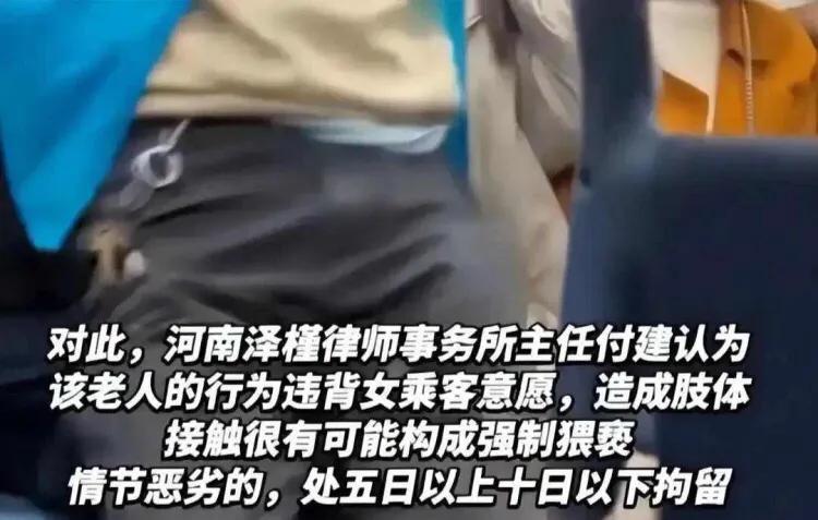 圍繞老人的具體行爲,法律界同樣給出了明確判斷,律師指出,老人強行坐在女乘客腿上,帶有明顯的身體接觸和侮辱性質,已經涉嫌“強制猥褻”;如果警方調查後認爲行爲惡劣,還可能以“尋釁滋事”論處。