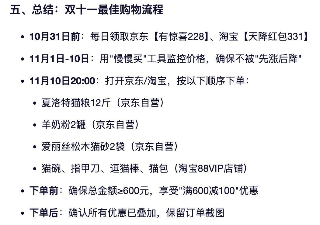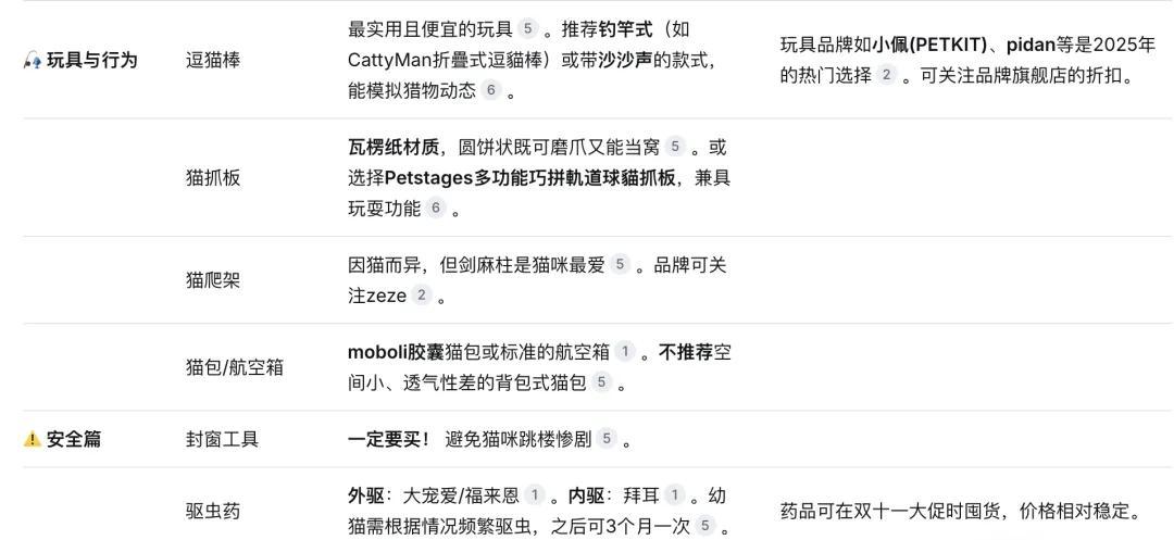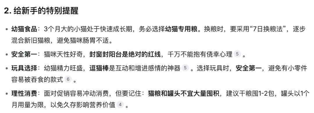 最後,依然是滿滿的情緒價值。雖然沒有提供太多的紅包口令、疊券湊單攻略,但補充了相當準確的新手養貓建議。