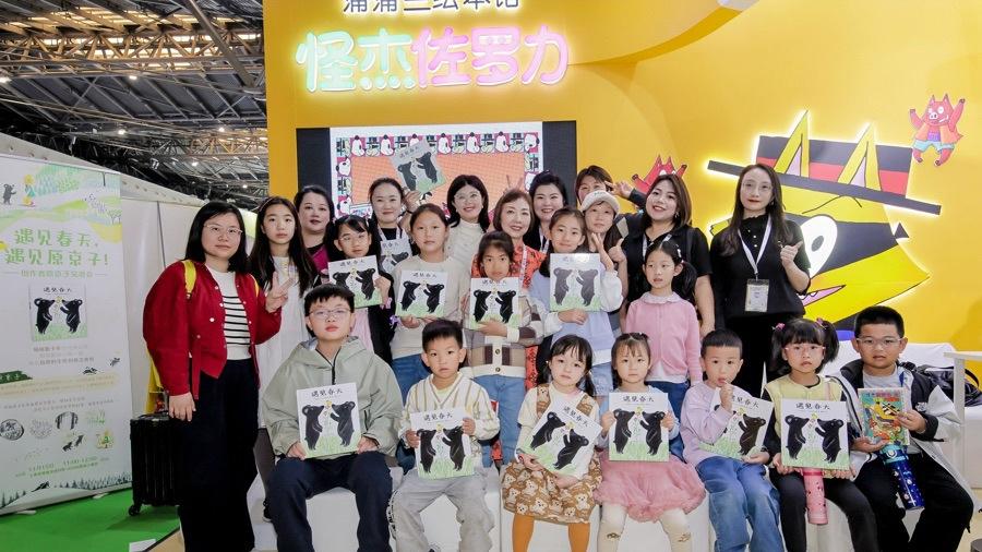 爲期三天的2025中國上海國際童書展,將童書中的純粹、溫暖與無限想象傳遞給小讀者。在蒲蒲蘭展區,日本治癒系繪本奶奶原京子《遇見春天》不僅僅是關於尋春的故事,更是對好奇心、探索精神以及生命中美妙相遇的禮讚。繪本畫面從冬日黑白灰,慢慢過渡到春日花開滿樹的粉色,充滿巧思。她還分享了與先生原裕、“怪傑佐羅力”系列作者的合作趣事,現場氣氛熱烈。