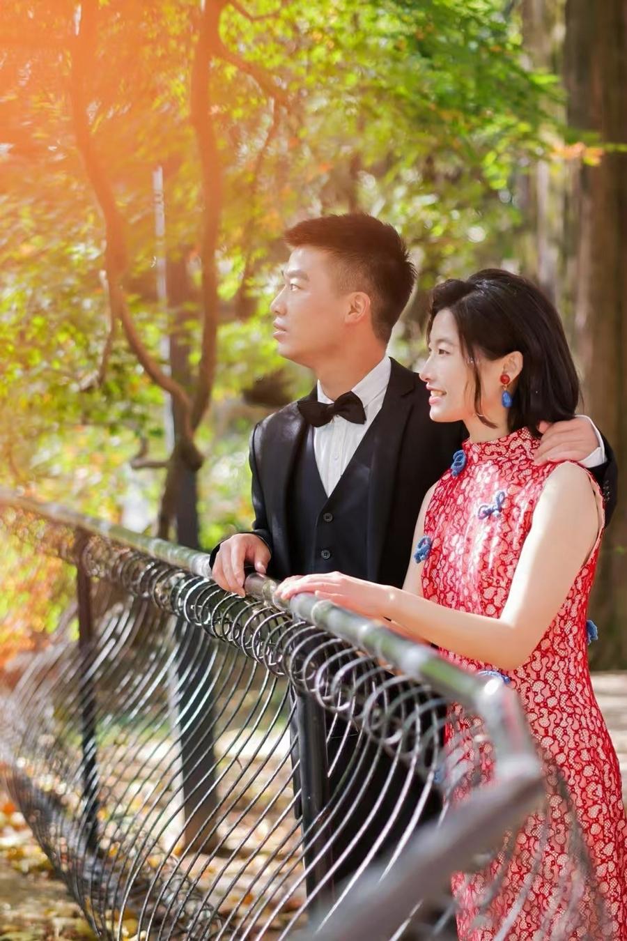 活動現場最動人的風景,莫過於多對身着婚紗禮服的新人。紅楓似火,隨風輕輕搖曳,與新人的白紗、紅妝相互映襯。他們在漫山紅楓與百年別墅的見證下,定格幸福瞬間。不少遊客特意穿着民國風服飾,在這些藏着秋意的建築間打卡拍照。“紅楓、別墅、青石板路,每一處都太出片了!”來自上海的遊客李女士說,她和朋友提前做了攻略,專門來打卡莫干山。“這樣的盛景,值得跨越山海奔赴。”