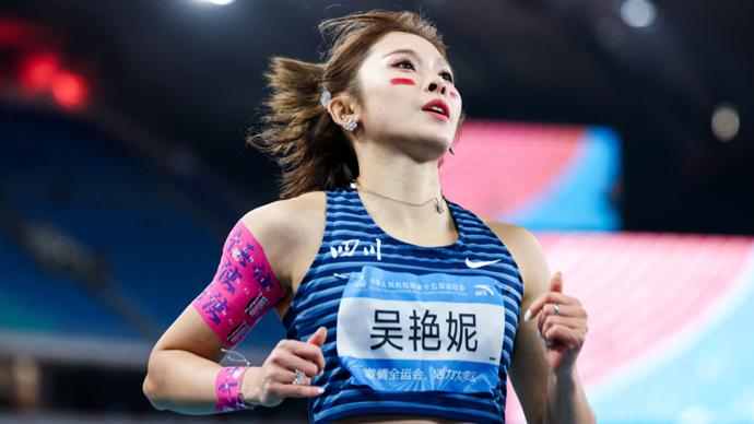 一向以精緻妝容亮相賽場的吳豔妮特意在臉頰上繪了兩抹紅色,宛若一名即將出徵的戰士。然而,廣東省奧林匹克體育中心未能成爲她的福地。儘管吳豔妮在女子100米欄決賽中跑出了12秒85的個人賽季最佳成績,仍以0.04秒的微弱差距屈居亞軍。廣東隊選手劉景揚爆冷摘得金牌,福建隊名將林雨薇以12秒94獲得銅牌。