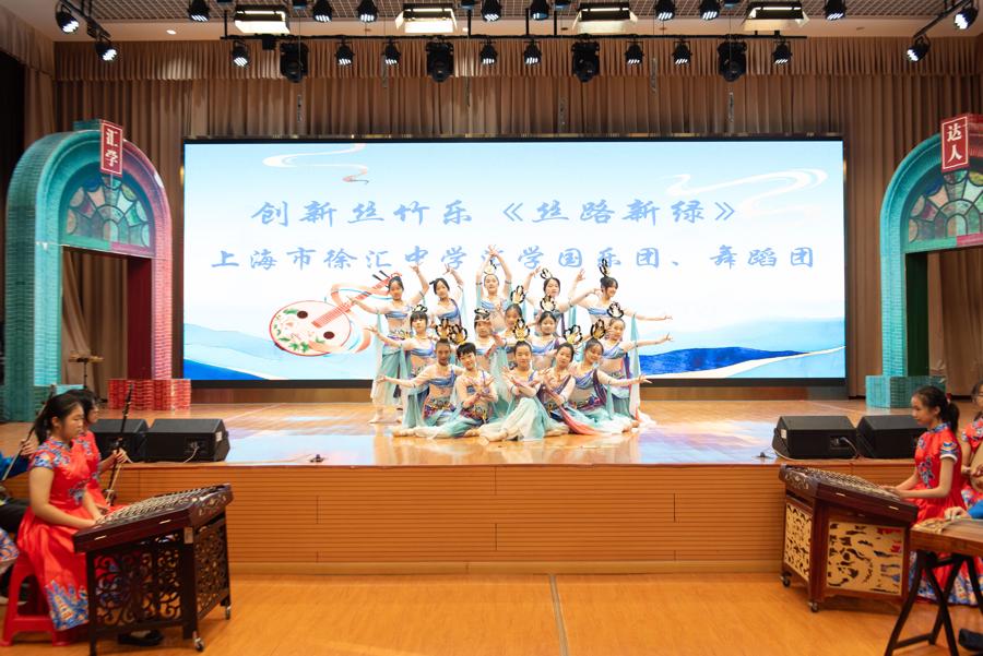 作爲流行於江浙滬地區的優秀民族器樂形式,江南絲竹於2006年列入第一批國家級非物質文化遺產名錄,以“你繁我簡、你高我低”的技法特色承載着謙讓協調的文化內涵。“每一個接觸絲竹的孩子,都是一顆非遺種子。”在特級教師、徐匯中學科研與課程發展中心主任史莉莉看來,無論是未來成長爲專業演奏家,還是懂得欣賞藝術之美的受衆,這份浸潤心靈的文化滋養,都將成爲孩子們人生中珍貴的人文底色。而AI賦能、歌舞融合的創新表達,更以科藝融合爲核心紐帶,讓孩子在絲竹韻律與科技創意的碰撞中探索跨界可能——用數字化手段改編古曲、以藝術視角解構樂理、借科創思維活化表演形式,既深化了對非遺的理解,更精準培養了創新思維與實踐能力,讓江南絲竹在新時代校園裏煥發持久且鮮活的生命力。