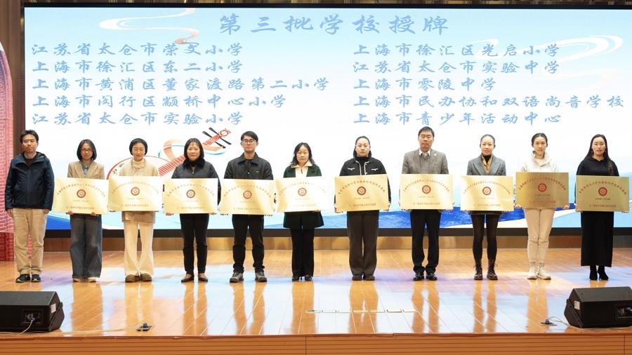 11月18日下午,“智創未來——長三角中小學江南絲竹聯盟第三批學校授牌暨展演”活動在上海市徐匯中學啓幕。隨着江蘇省太倉市實驗小學、上海市青少年活動中心等10個單位接過授牌,這個致力於非遺傳承的校園聯盟“朋友圈”進一步擴容,江南絲竹這顆國家級非遺明珠,正以更年輕的姿態紮根長三角校園。