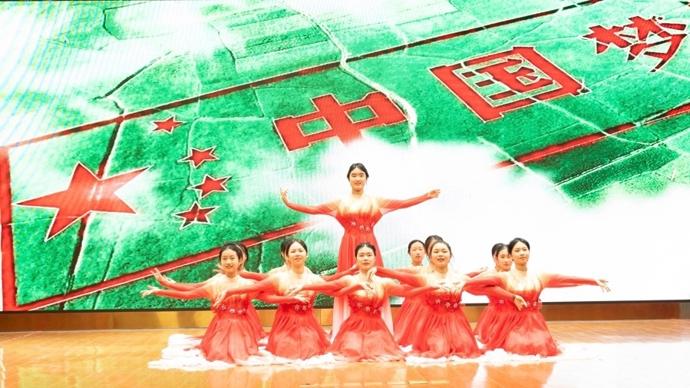 活動尚未正式開場,暖場環節便頗爲吸睛。“絲竹AI繪江南”獲獎作品彙總視頻在大屏流轉,孩子們用科技筆觸勾勒的江南韻律與絲竹意境相映成趣。上海市徐匯中學高一新生舞蹈隊帶來的《萬疆》,舞姿舒展間盡顯少年意氣。
