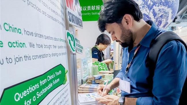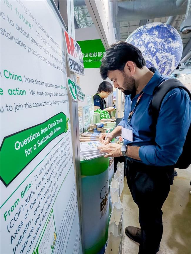 這些提問由文具品牌晨光收集並帶到COP30會場,在“中國青年助力可持續未來”互動區集中呈現。來自全球各地的參會代表紛紛駐足,認真回應,展開一場跨越地域與代際的對話。