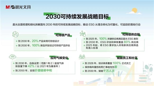 作爲中國文具行業首家發佈ESG報告的上市企業,晨光已形成涵蓋可持續產品、氣候變化應對、供應鏈管理與社區賦能四大支柱的戰略體系。截至2024年,其範圍1、2溫室氣體排放量較2021年下降46.4%,可再生能源使用比例達17%,併入選“國家級綠色工廠”。
