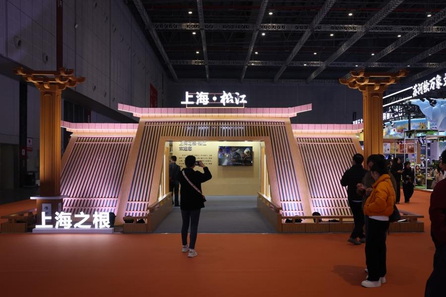 11月20日,第六屆長三角國際文化產業博覽會在國家會展中心(上海)開幕。在5.2號館a-31展臺,以“古華亭·新松江”爲主題的“上海之根”松江展臺驚豔亮相。現場以“古新交融”爲主題打造了五大功能區,通過文化展示、文創首發、非遺體驗、古韻新生及互動打卡等多元形式爲各地展商及市民羣衆呈上一場文旅商體農展融合賦能、千年文脈與新城心跳交相輝映的盛宴。