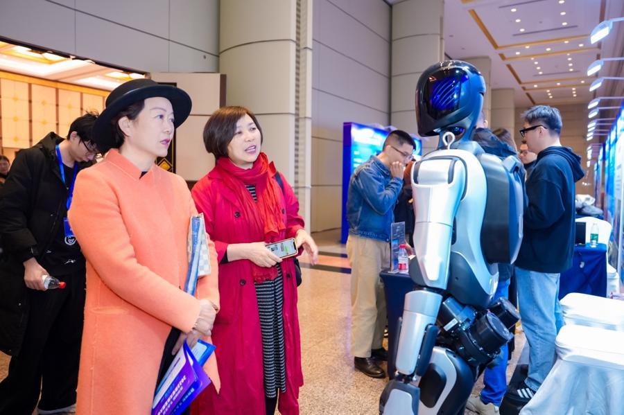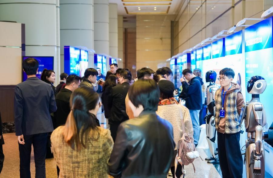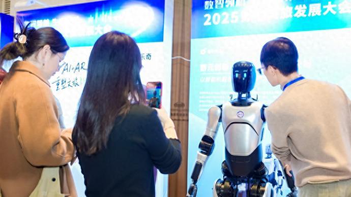 2025數智文旅發展大會展區,人們對文旅機器人充滿興趣。