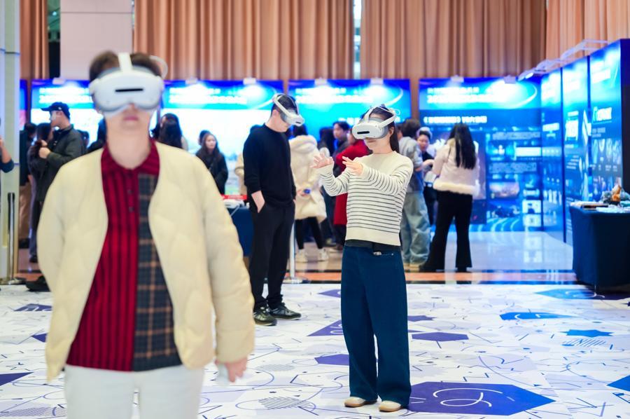 2025數智文旅發展大會展區,人們正在體驗VR眼鏡。