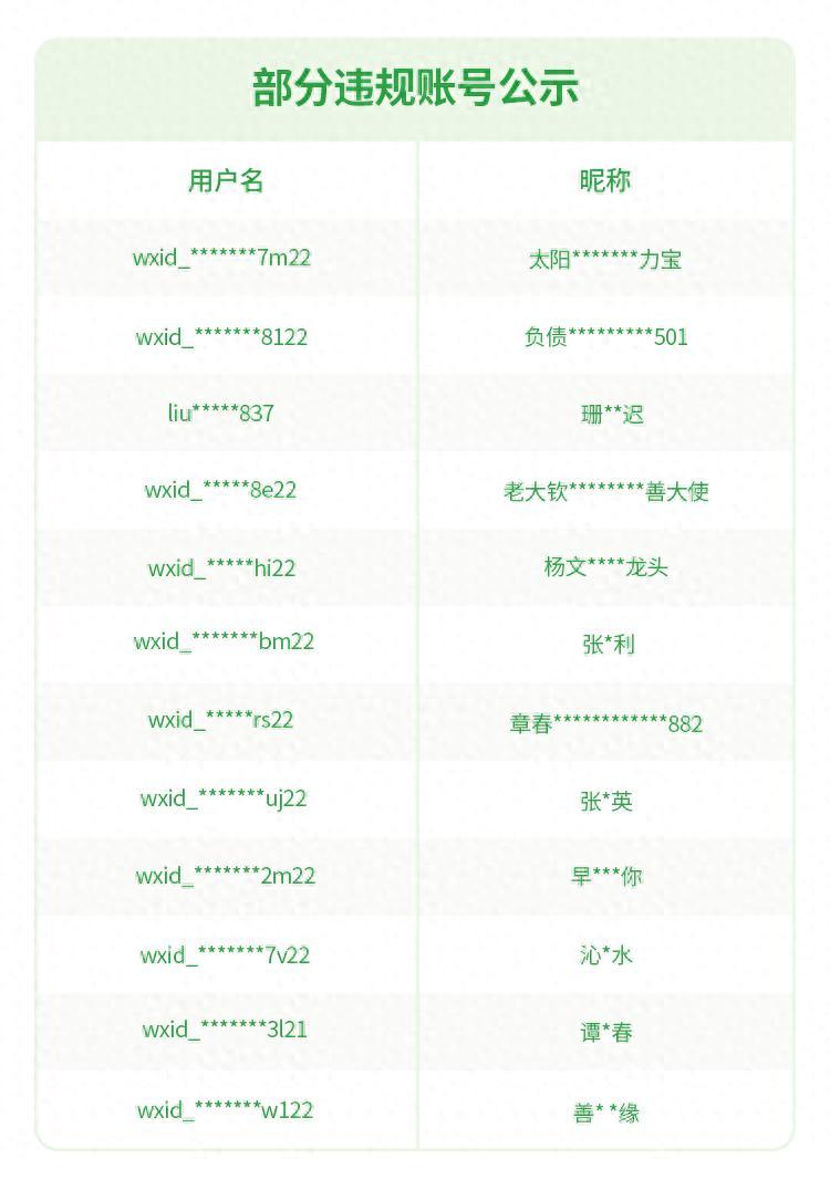 上述行爲一經發現覈實,平臺將依據國家相關法律法規以及《騰訊微信軟件許可及服務協議》《微信個人賬號使用規範》等平臺協議及規則,視違規嚴重程度對相關賬號進行階梯式處理,多次違規者有可能永久限制登錄,對確認違規的微信羣,進行停用羣功能處理。