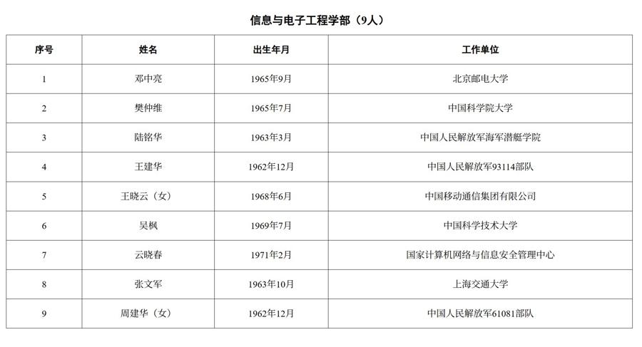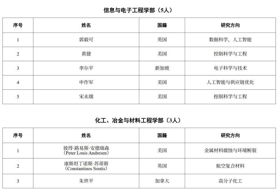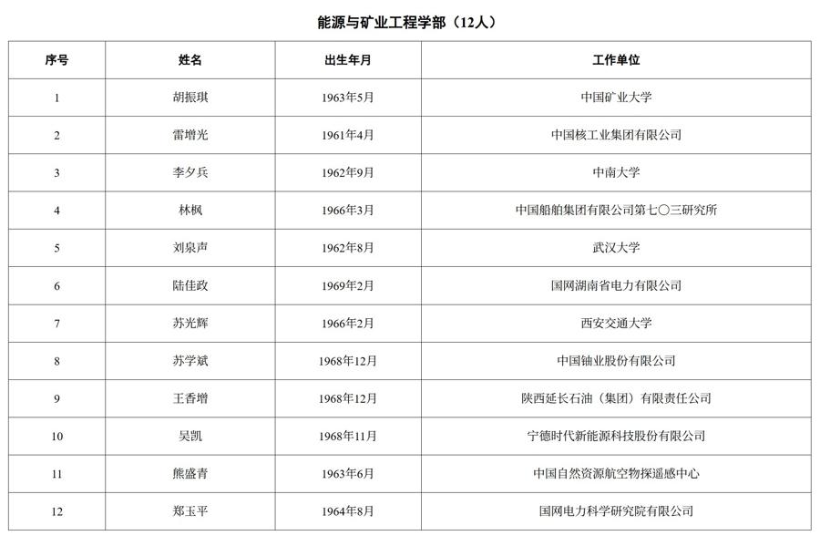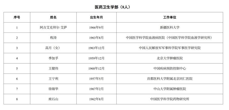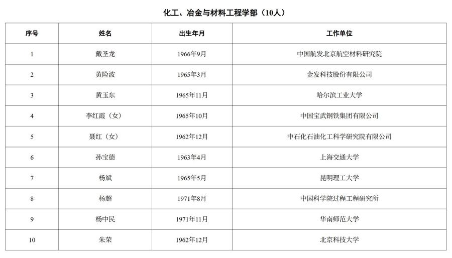 其中,數學物理學部14人,化學部11人,生命科學和醫學學部13人,地學部9人,信息技術科學部11人,技術科學部15人。