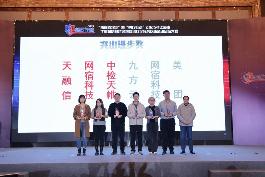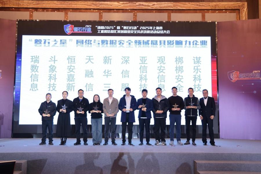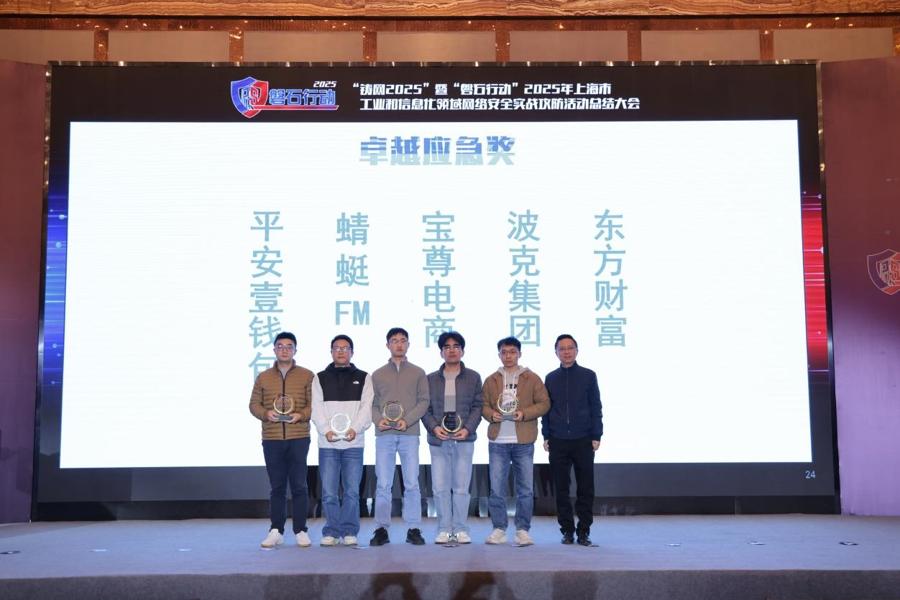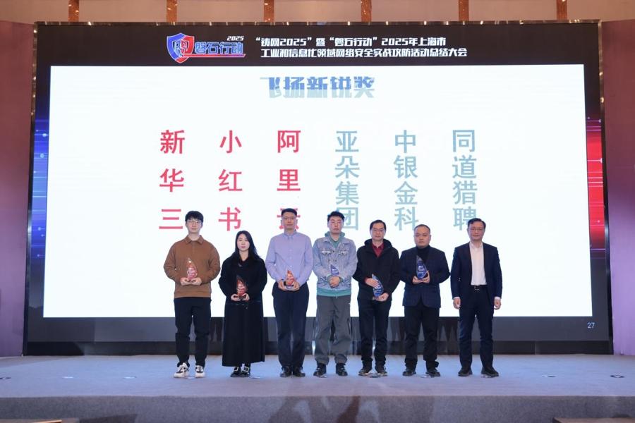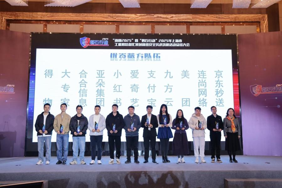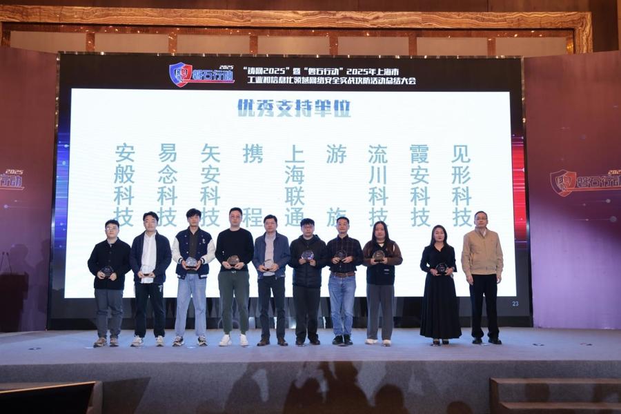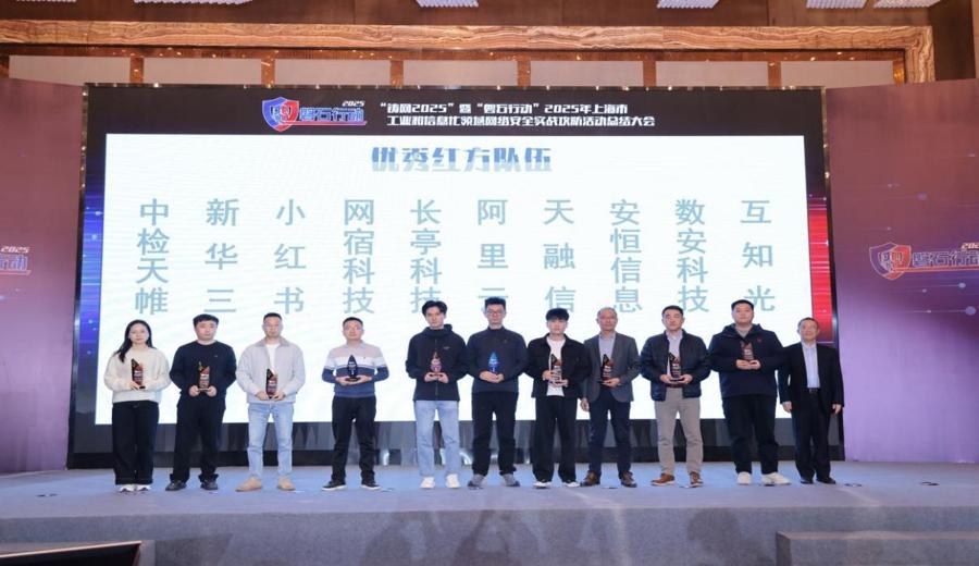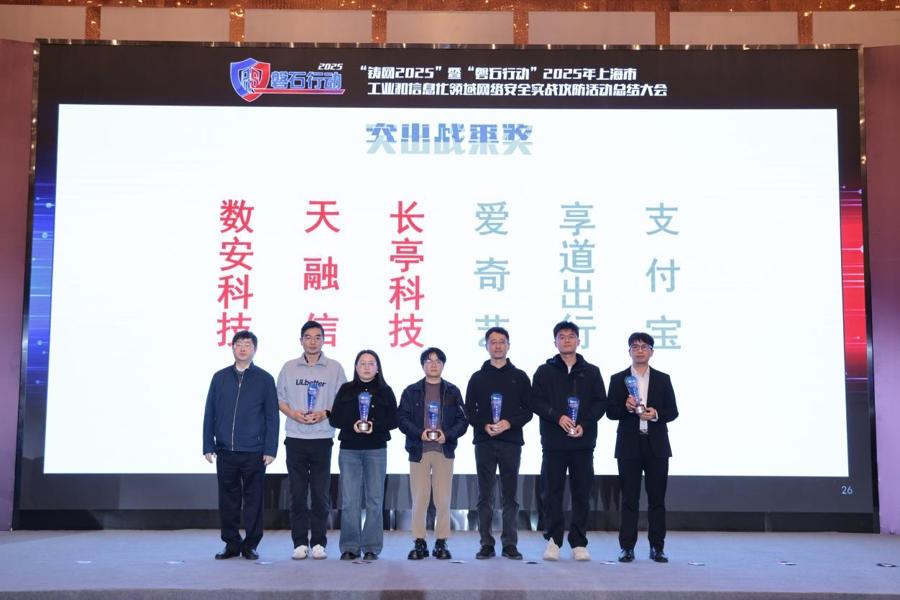 在頒獎儀式環節,與會領導分別爲獲獎單位頒發了優秀紅方隊伍、優秀藍方隊伍、優秀裁判單位、優秀組織單位、優秀支持單位,卓越應急獎、突出進步獎、突出戰果獎、飛揚新銳獎、優秀技戰法獎、優秀專項獎,並對2025年獲得“磐石之星——上海市互聯網行業網絡與數據安全最具影響力企業和上海市互聯網行業網絡與數據安全本土最具實力企業”稱號的企業進行表揚。