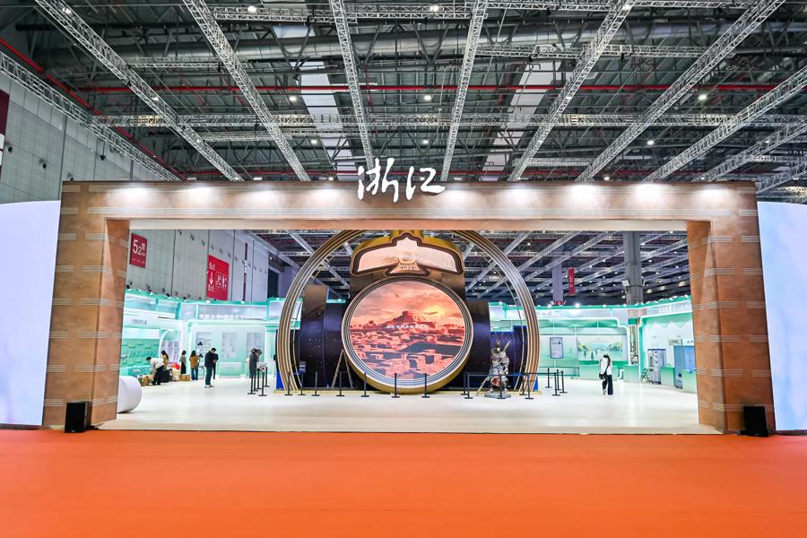 今年,浙江展區以“培育文化新業態,促進文化新消費”爲主題,在約2000平方米的展陳空間內,匯聚132家省內文化企業,打造了一場貫穿五千年文明與數字未來的沉浸式文化體驗。
