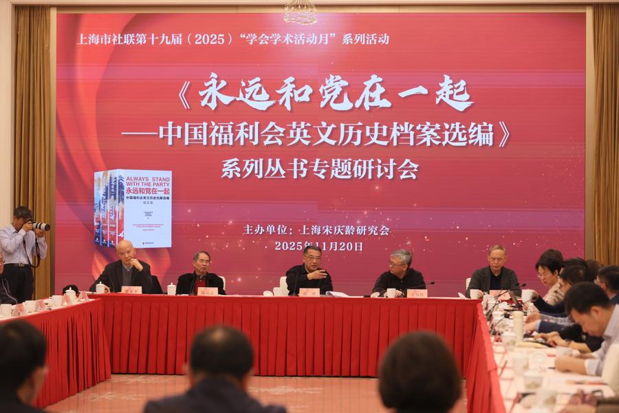 由上海宋慶齡研究會主辦的《永遠和黨在一起——中國福利會英文歷史檔案選編》系列叢書專題研討會,於11月20日在上海展覽中心友誼會堂舉行。作爲市社聯第十九屆(2025)學會學術活動月系列活動之一,本次專題研討會圍繞這套叢書的歷史意義和研究價值展開了深度探討。
