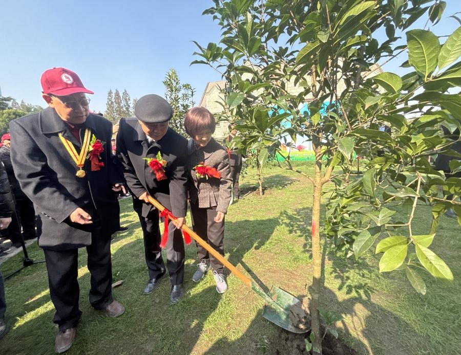 今天的植樹活動,共栽種富有品格高潔、寓意團圓思念的桂花樹兩百多株。更有意義的是,所栽種的部分樹木由新四軍老戰士、參加上海解放戰役的開國將軍和爲上海各項建設事業做出貢獻的人士定名掛牌,由他們的後代認養。