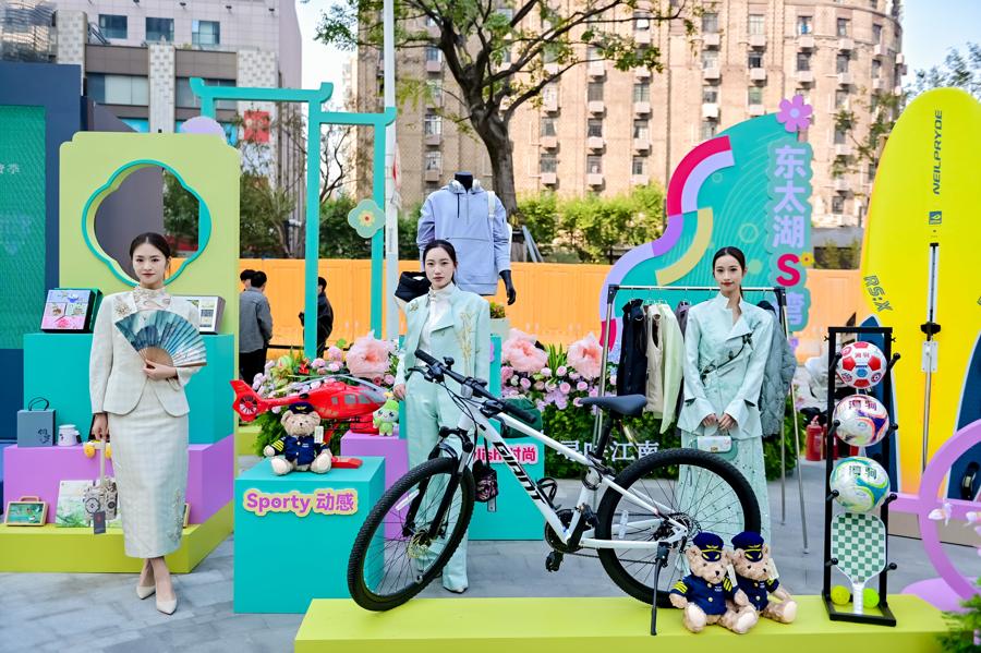 作爲蘇州太湖一號公路的六大精華段之一,東太湖S灣的全新驛站正陸續啓用,帶給遊客“走走停停皆風景,分分秒秒可運動”的休閒體驗,解鎖智慧(Smart)、動感(Sporty)與時尚(Stylish)交織的多元活力。現場,動態展陳以“潮玩+美宿”“匠心+時尚”爲核心主題,創新打造東太湖S灣、絲綢時尚兩大沉浸式體驗場景,東融航空模型的科技感、捷安特運動裝備的休閒活力、仁昌順蘇式茶食的軟糯香甜、“絲綢天團”文創禮品的溫潤細膩,江村優質農副產品的田園氣息……一系列吳江特色好物鮮活呈現,直觀傳遞吳江文旅魅力。