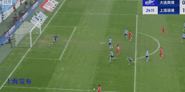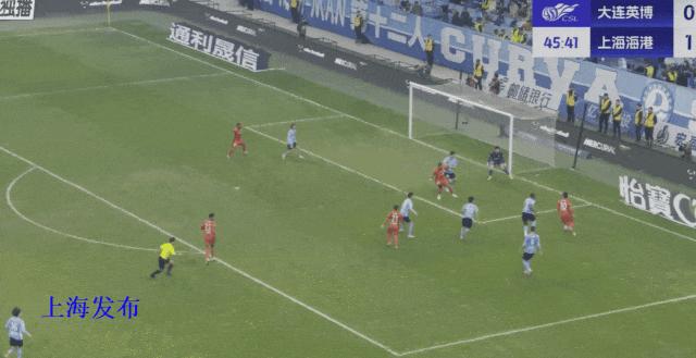 第45分鐘,海港前場斷球后製造威脅,皮球最終被沒收