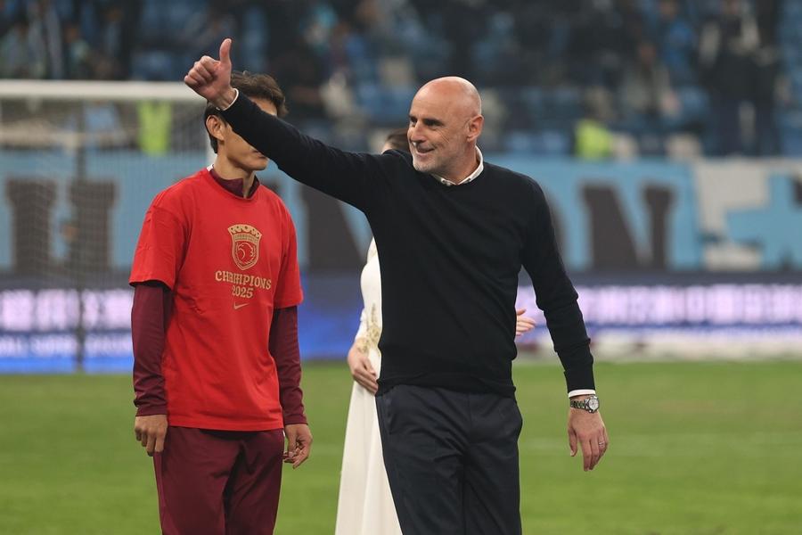 11月22日晚,大連梭魚灣足球場以62230人創造了2025賽季中超最高單場觀衆人數紀錄,也見證了今年聯賽最大懸念的揭曉。上海海港隊在客場以1比0擊敗大連英博隊,以20勝6平4負積66分的戰績捧起冠軍獎盃,實現三連冠偉業。
