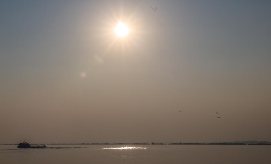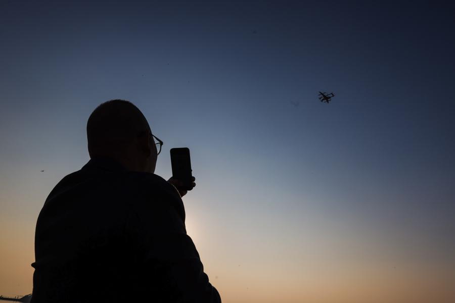 圖爲eVTOL從“水上機場”起飛,騰空飛行。