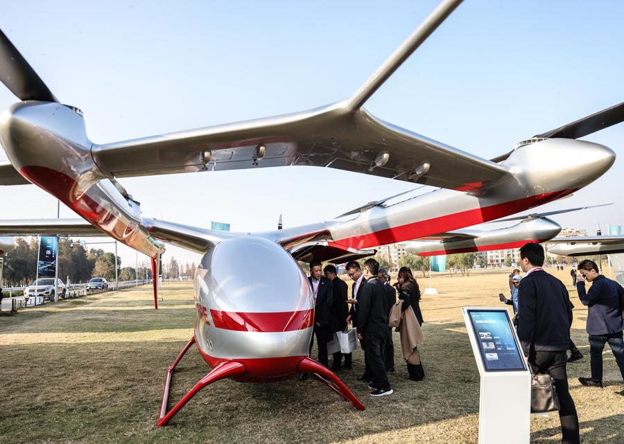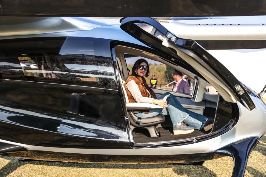 圖爲觀衆正在體驗eVTOL航空器座艙。