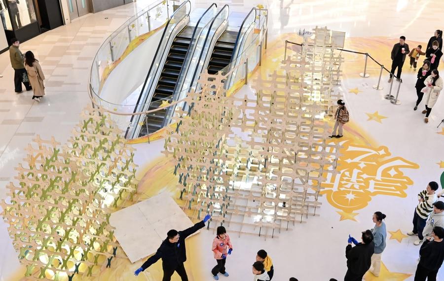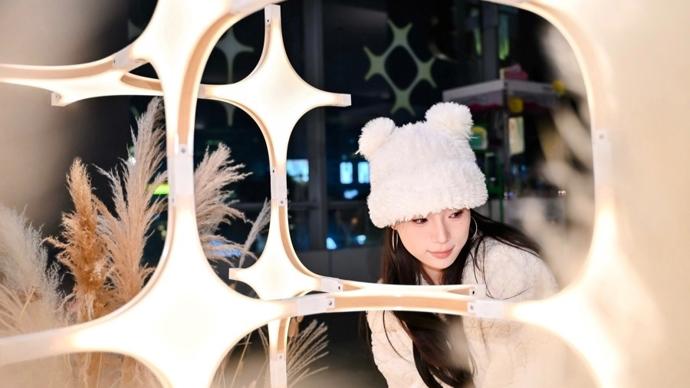 活動期間,虹橋新天地聯動上海大學上海美術學院、同濟大學、中國美術學院與藝術家幽靈電力,共同呈現4組兼具藝術性與互動性的光影交互裝置。上海大學上海美術學院在商場南區中庭打造“‘新’運松林”,邀請客人蔘與搭建由環保彩絨板組成的5米高“許願林”,營造鏈接希望與互動的公共藝術實踐;同濟大學郝洛西教授團隊在南區戶外靈感花園打造“‘新’語流光”,觀衆在熒幕前揮動手勢即可觸發吉祥話,以科技詩意連接個體,打造沉浸式情感體驗;中國美術學院薛夢婷、王郅之、章俊傑創作的“竹織星野”,以光影竹編構造星夜夢境,同時該區域聯動北京微愛基金會發起“微愛聚光”公益活動,將消費行爲轉化爲善意傳遞;藝術家柴浩然(幽靈電力)的作品“騎到星星升起”亮相北區,觀衆圍繞帷幕騎行即可升起星星,以互動參與激活商業空間活力。