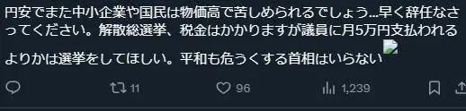 其中一條瀏覽量超71萬次的日文帖文指出,高市在面對在野黨要求其撤回發言時辯稱“這並未改變歷屆政府的立場”,但事實上,歷屆日本政府從未明確表示“臺灣有事”屬於“存亡危機事態”。不少網民留言批評高市“缺乏外交常識”,要求其撤回相關錯誤表態。