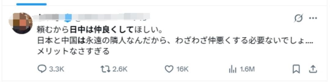 該帖文引發大量網民共鳴,有評論稱,“永遠希望日中友好”。